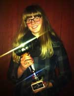 Här poserar Eleni Larsson med sin pokal efter sin glänsande säsong