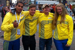 Moi moi klubben, här kommer hälsningar från Finland! Jan och Robin har nu befunnit sig i Finland sedan måndag för att träna stafett medan Eleni och Adam ankom på tisdagen med resten av den svenska truppen. Faciliteterna är mycket bra och vädret har förutom en dag varit helt fantastiskt hittills, vilket har gagnat idrottsprestationer under det här mästerskapet. Svenska truppen har presterat bra, där bland annat Eleni Larsson lyckats ta sig till final, grattis! Det var inte till någons större förvåning, eftersom Eleni berättade att hennes form är bra och hennes tidigare resultat under säsongen och erfarenhet av internationella mästerskap indikerade på finalchans. Adam lyckades inte riktigt få till det när han hoppade i torsdags. Efter ett långt första hopp som tyvärr var övertramp domnade hans hoppben bort och efter det kunde han inte få ut sin fulla potential. Trist att skadan satte stopp för vidare avancemang till finalen, då 7.42 meter räckte för final och det är en nivå Adam lätt når. Stafettväxlingarna har fungerat mycket bra under träningarna här i Finland och därför är stafettlaget väldigt hoppfullt om en bra placering på söndag. Lagets sprinters är i bra form och med bra växlingar är stafettlagets mål, att ta sig till final, fullt rimligt. Jan springer den fjärde sträckan i stafetten och Robin är reserv. Hoppas ni följer oss från Sverige!