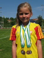 Det var en och annan rödgul som trotsat värme och nationaldag för att tävla i KRINGELSPELEN och TYRESÖ UNGDOMSSPEL. En av dem var Rebecka Forsling från grupp 04C som öste in medaljer och kom på delad förstaplats i trekampen. Vi tackar Mikael Ohlsson som är tränare för Rebecka för bild och rapport!