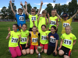 Skickar över en bild på ett glatt HAIS lag 2003A/C som vann 10-års klassen i Triangelkampen på Enskede IP. Inför den avslutande kurirstafetten ledde laget med ynka en placeringspoäng före ett av Hammarbylagen. Vinst i stafetten gav sedan totalseger i deltävling 2 av Triangelkampen. 9-årsklassen vanns av ett Hammarbylag och 11-års klassen av ett Täbylag följt av HAIS 2002A som god 2:a. Vi avvaktar resultatlistor.