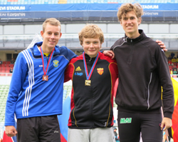 Jonas Linderholm visar att han har tagit rätt beslut när han bestämde sig för att utveckla sin medeldistansförmåga och lägga långdistansen på vila när han sprang in på nya dunderperset 1.56,87! En mycket intressant fortsättning följer för snabbe Jonas som det senaste året i stor sett kört alla distanser mellan 60 meter och halvmarathon... Det finns många goda resultat från sista dagen av HUDDINGESPELEN och vi tar några russin ur kakan. F13-tjejen Linda Eriksson tog hem dels 200 meter på 27,31 och även längdhoppet med härliga 4.94. Marion Sackey-Mensah är också på gång i längd då hon vann på 5.29. En lovande släggtjej hittar vi i Victoria Lagerberg som vann både F13 (2kg) på 43.28 och F14 (3kg) på 37.95. Det blev dubbla KLUBBREKORD med 2 och 3 kg-kulan. Kul med återväxt bakom Eleni. Återväxt har vi även i längd där bilden visar prispallen i F10 med segrande Madeleine Söderqvist som gick över dröm-4 med nio cm tillgodo. Men som sagt det var många HAIS:are i elden denna dag så vi rekommenderar en genomgång av våra resultatlistor som uppdaterats LIVE under hela helgen!