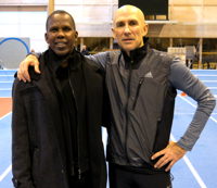 Bill Krohn och Jama Aden återförenades efter 24 år! Läs den lilla historien om dessa vänners olika idrottsliga vägar i livet från det att de umgicks och tränade/tävlade med varandra under 6 års tid i New York till helgens möte i Sätrahallen där Jama var och körde ett träningspass med sin adept Ayanleh Souleiman som springer på Globen i XL-Galan tillsammans med bl.a. en annan av sina löpare Genzebe Dibaba som ju slog världsrekord på 1500 meter i veckan. Några andra av hans löpare är Aboubakr Kaki och Musaeb Abdulrahman Balla. När Jama kom till New York var han en fattig löpare från Somalia som hade fått möjlighet att plugga på universitet och kom där i kontakt med Bill och de började träna tillsammans och har även tävlat mycket mot varandra. Jama fick även uppleva ett OS som aktiv på 800 meter bl.a. När studietiden var över och löparkarriären var slut fick Jama jobb som coach i Qatar där han fick jobba med riktigt duktiga löpare och byggde grunden till sitt grymma löparstall där det finns idel storheter och han är idag en välbärgad man med hotellinnehav och en säkrad framtid. Något idrottande har det inte blivit sedan löparkarriären tog slut till skillnad från Bill som ju egentligen aldrig lagt av utan hela tiden bibehållit sin status som en av världens absolut bästa löpare. Bill hör ju till dem som alltid arbetat heltid, i New York som lärare, och aldrig tränat mer är sex pass i veckan. På frågan som han alltid får om han skulle kunnat bli ännu bättre om han satsat heltid svarar han alltid att han kanske skulle ha varit sämre utan den balans i livet han tycker sig ha behövt. En mycket faschinerande historia om två idrottsmän som "sluter cirkeln" efter olika karriärsval.
