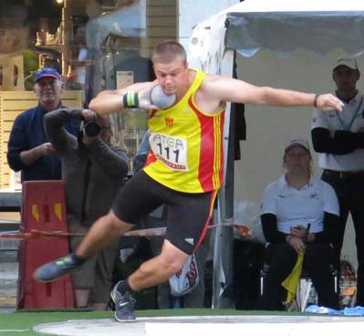 Vår duktige släggkastare Chris Arnoldsson med tränare Jörgen Karlsson är i tyska Mannheim med ett svenskt lag för att få bra internationellt motstånds i sina respektive grenar.
