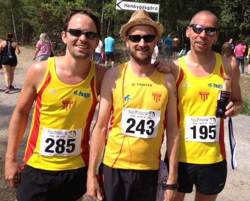 Första VSM-dagen bjöd på 32 plusgrader i skuggan och bilden från 5000-loppet får representera den för dagen svettigaste grenen. Många intressanta HAIS-starter som förutspått och Lenny Martinez comeback på banan blev en total defilering in till ett SM-guld på grymma 11,43. Ännu grymmare var förstås Mattias Sunneborn som lekte hem 100 meter på 11,10 i M40 och sedan även längdhoppet där också Fotios Makrostergios tog hem ett överlägset guld! Hans motsvarighet på långdistanssidan torde vara Fredrik Uhrbom som stack iväg från start och rullade runt på 15.13,02 på sina 5000 meter. Hans skulle sedemera också springa 1500 meter på kvällens galalopp... Peter Schmitt fick som vi anade en tuff uppgift att försvara inomhusguldet på 800 då det var hela fem löpare under 2.10 och det blev tiull slut ett brons på fina 2.05,81. Robert Holmgren börjar bli en rutinerad medaljör och knep denna gång bronset på 5000. Axel Bernhult tog sitt första (?) Sm-guld i diskus 7 meter före tvåan, han var som ni kanske minnsmed i seniorlaget i Borås och knep poäng också! Tomas Classon fixade hem ett vikt-guld men Lars Fyhr hade inite centimetrarna på sin sida utan fick denna gång nöja sig med ett silver i längd. En dominant på medeldistans har vi i Bill Krohn som inte hade några problem att ta helgens första guld på 800 meter. Torbjörn Persson tog två snabba medaljer med ett guld i vikt ch ett silver i diskus. Antti Lindstedt håvade in en hel hög med medaljer, guld i 300 häck och längd samt bronspå 100 meter. Jöran Westberg dominant i diskus och helgens första guld och sedan hade vi två guld i M90 (!) genom Gunnar Kulleskog i diskus och vikt.