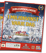 BingoLottos Julkalender är föreningarnas bästa förtjänstskapare. Den är väldigt vinstrik och är gjord i ett smart och behändigt skraplottsformat, vilket gör att du enkelt kan skicka med posten till vänner som en liten present. Och i år har vi gjort den ännu bättre! Årets Jubileumskalender har en helt fantastisk vinstplan med vinster för hela 35 miljoner, där man kan vinna 1 miljon varje dag fram till jul! Man kan säga att BingoLottos Jubileumskalender är förmodligen Sveriges bästa och mest lättsålda julkalender. För vem vill inte ha 24 chanser att bli miljonär, för bara 100 kronor?! Sveriges största julkalender med 1 miljonvinst, varje dag och med vinster för 35 miljoner finns att köpa i klubbhuset och vid Första Chansen den 22-23/11.