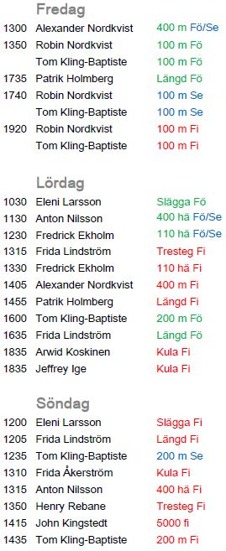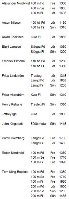 Tom Kling-Baptiste gick vidare till semifinal på 100 meter genom att lätt vinna sitt försöksheat på10,50 +0,6 och Robin Nordkvist fick en spännande väntan sedan han sprungit in som femma i första heatet på 10,85 som senare skulle visa sig räcka för avancemang med 3/100 tillgodo! Brorsan Alexander slapp försöksheatet på 400 meter då det beslutats om en direktsemi senare idag!