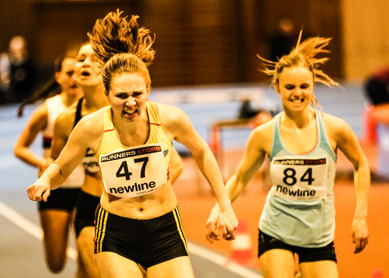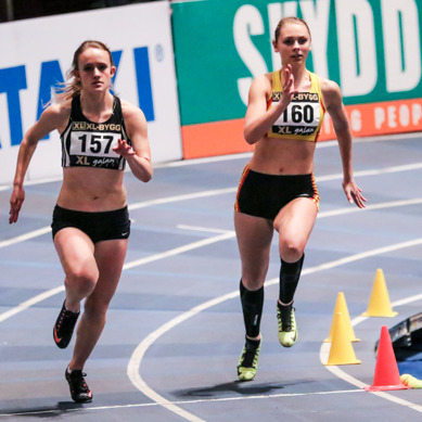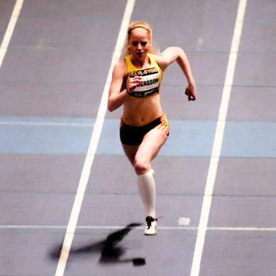Ewelina Fabiszewska får illustrera de starka viljorna hos HAIS-löparna som begett sig till Sätrahallen på lördagskvällen för att testa SM-formen.