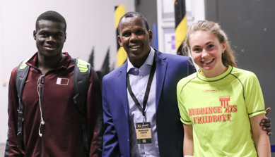 Några aktiva föredrar att köra sprintlopp i samband med MKSM i Norrköping. Dennis Elms-Jansson, Louise Gabrielsson och Juliette Maussier springer 60 meter och är sedan med och stöttar våra mångkampare