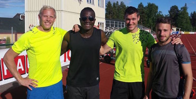 Tom Kling-Baptiste är ju sedan länge stationerad med träningsgruppen i Sundsvall under Håkan Anderssons ledning och har "hemmaplan" när dagens final i Lag-SM inleds om några timmar. Träningskompisarna ovan blir tillfälligtvis konkurrenter om medaljerna för sina respektive lag.