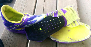 Årets upplaga av Lag-SM där finalen avgjordes i direktsändning under hela onsdagseftermiddagen var en berg och dalbana i känslor bland de rödgula på plats på den för dagen omdöpta Rabaldershov. Vi hade knappt hunnit installera oss och kolla upp kameravinklar, serveringar, calling, toaletter m.m. förrän det hände något vid det inledande stavhoppet som på sätt och vis påminde om vårt USM-lag som inledde finalen i Gävle med att den "väntade" 11poängaren på den inledande korthäcken i stället blev en nolla. Nu var det Anton Johansson som knäckte axeln så illa vid inhoppningen att vi 20 minuter innan start fick slänga in "alltialloreserven" Fredrik Kihlblom i stavhoppet och under tiden blev Anton liggande under behandling av ambulanspersonal. Nästa kaos utbröt då man upptäckte att kastburen inte höll måttet utan var livsfarlig att använda samtidigt som hoppgrenarna vilket bidrog till ett par timmars försening för vissa aktiva. Skon ovan illustrerar nästa dramatiska tillbud då John Kingstedt´s sko helt sonika gick isär vilket tvingade honom att stanna för att dra ner resterna från vaden för att sedan slutföra hinderloppet med en sko de sista tre varven.Tävlingsmässigt blev det en mycket rafflande final då vi hela tiden låg och nosade på medaljplats. Efter tappet på hinder där vi sumpade 4 poäng för dojjans skull var det ett tag tufft att få kontakt med tredjeplatsen igen men efter Ludvig Hillenfjärds grymma skräll med en andraplats på korthäcken trodde vi att vändningen kommit då det bara skilde 3 poäng upp. Tre grymma grensegrar genom Tom Kling-Baptiste (100), Johan Hydén (5000) och Staffan Ek (1500) varvades med lite stolpe ut på 400 med och utan häckar men matchen levde ända fram till stafetten som tyvärr inte blev den avslutande grenen p.g.a. strulet med kastburen men med de väntade resultaten i de avslutande grenarna var det ett måste i stort sett att Ullevi skulle växla bort sig samtidigt som vi kom topp-2 för att kunna ro hem bronset. Efter lite knackiga växlingar blev det till slut en tredjeplats i stafetten samtidigt som Ullevi gjorde ett kanonlopp med vinst på 39,99 och det var avgjort före den avslutande diskustävlingen. Härligt krigat av alla aktiva räckte tyvärr inte hela vägen den här gången men vi är kvar bland de som inte behöver kvala in till finalen nästa år! Vi jobbar för fullt med SM-sidan där text och bilder kommer att läggas upp så fort det nånsin går!