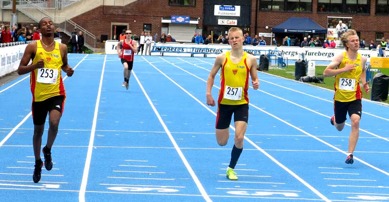 Mycket omväxlande väderförhållanden sista dagen på Sayo där det stundtals på efrtermiddagen blåste halvstorm, regnade och "solade" Tidig morgon för häcklöparna där Fredrik Kihlblom gjorde ett bra 110-lopp med 15,08 vilket betydde andraplatsen med endast en hundradel fram till segrande Johan Bengtsson. Inte så långt efter körde han 400 meter vilket vi såg fram emot som ett litet P17-KM med fyra killar på startlinjen. Fredrik hade lyckats anmäla sig på en så bra tid att han hamnade i A-heatet och därmed inte kom med på bilden här ovan där Iyuel tar hem matchen mot Anton och Samuel. "Klubbmästare" blev dock Fredrik på nya perset 52,88. Dags så för 2000 meter där Markus Asplund gjorde dagens jättepers med 43 sekunder ner till 6.31,91. Så var det dags för ett klubbrekord att noteras av David Thid som gjorde hela 5.25 och vann P12-klassen med hela 8 decimeter! 200 meter bjöd på ett fint pers av Amadou Sussoho som efter en knagglig start fick till 21,68 som gav andraplatsen i seniorloppet efter segrande Joel Groth men före Carl Armfelt. Efter att samtliga av våra löpare återigen persat sig fram hela dagen var det avslutande 1500 meter där det blev ytterligare tre genom John Kingstedt, Marcus Häggh och Hanna Bergström. Överlag en mycket fin HAIS-helg i Sollentuna där de få som deltog presterade på mycket bra nivå!
