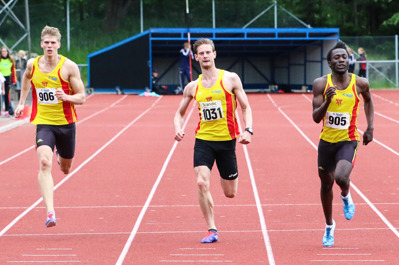 Veteranstafetterna bjöd på högklassig löpning framför allt i M35-klassen där kvartetten Robert Kronberg, Lion Martinez, Lasse Ohtamaa och Mattias Sunneborn rusade in på nya nordiska rekord i såväl 4*100 meter (42,82) som svensk stafett (2.00,05). Vi hittar flera toppar bland juniorerna där Amadou Sussoho matchade Sunday Ojuri efter en usel start enligt han själv och var bara 2/100 efter i mål och noterade 10,94 i motvind 1,5. Douglas Hellbratt provade på 400 meter för första gången och sprang in på fina 50,59. 1500 meter bjöd på en duell mellan Staffan Ek och Johan Hydén som hade hjälp av Mattias Claesson som var engagerad som hare och det var den här gången Johan som drog längsta strået när han vann på 3.46,07 ett par tiondelar före Staffan. Nu väntar uppladdning inför kommande helgs 3000 meter på lag-EM för Johan.
