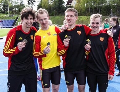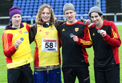 Så fick då Douglas Hellbratt sin revansch för missen i seniorstafetten och bidrog till att comebackande Janne Wokalewski, jorden runtresande Robin Nordkvist och "massagerullen" Amadou Sussoho kunde rusa hem en guldmedalj i ösregnet. Stort grattis killar! In i bildarkivet och kolla på färska bilder i väntan på SM-sidans uppdatering!