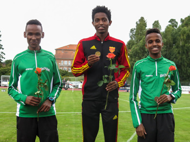 Endast 1,5 timme efter 800-metersfinalen var det dags för 3000 meter och premiär på distansen för Iyuel Ayele. Efter ett avvaktande lopp efter de tre loppen under helgen där han låg och bevakade händelseutvecklingen i joggtempo innan den splittrades när hårdkörningen drogs upp av Ullevikillarna och bildade en fyramannaklunga. Ganska snart släppte August Mollén och det såg ut att bli en upploppsstrid men kicken fanns inte efter alla lopp men det blev en bronspeng på nya klubbrekordet 9.08,36 efter en sista kilometer på 2.45och efter vinnaren Ahmed Abdullahi och Abdikhaliq Nooh.