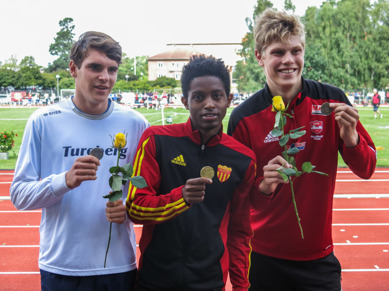 Iyuel Ayele poserar med sitt livs första individuella SM-guld efter segern på 1500 meter och fick omgående sin hett eftertraktade biljett till ungdomsfinnkampen. Han följde ju som ni redan vet upp med ytterligare ett guld på 800 meter och ett brons på 3000 meter som sprangs mycket tätt inpå 800-finalen. Uppladdning på vägen till Tammerfors blir Lag-USM på hemmaplan och senior-SM helgen därpå.
