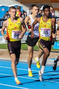 Staffan Ek tog sin andra medalj för helgen genom att ta hem silvret på 5000 meter som blev ett långsamt taktiklopp fram till den sista kilometern då tempot skruvades upp. Det blev upplagt för medeldistansdarna där Jonas Leandersson tryckte till och bara flög ifrån de övriga men Staffan svarade bra och tog ohotat hem andraplatsen efter en sista kilometer på 2.40. Grattis till silvret Staffan och coach Per och lycka till på Finnkampen!