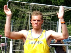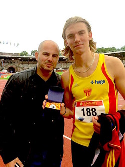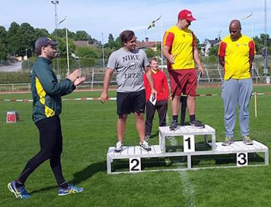 För vad sägs om 8 åldersklasser när årets landskamp mellan SWE-FIN-EST och NM för yngre avgjordes. Så det blev långa dagar för alla inblandade med tävlande från kl 9.30 till ca 18.00 på lördagen och ytterligare 1tim längre på söndagen, alltså ca 19 timmars av aktivitet med och förstås riktigt tufft för alla funktionärer. Stort tack för det. Det kändes extra kul med "comebackande" Fredric Ekholm i laget och det började riktigt bra med grenseger på 100m med 11,17 (i motvind) för att sedan följas upp med bl.a 715 i längd och 200 i höjd, för att sedan på den avslutande 400m få otrolig kramp sista dryga 100m och tom med fall, men kom in över mållinjen rullande. Alltså ingen rolig syn, men Fredde kom otroligt till start dag 2 med att vinna häcken på 14,72, hinna hoppa fina 452 innan låret satte stopp för tävlandet. Vi håller alla tummar att skadan läker fort.